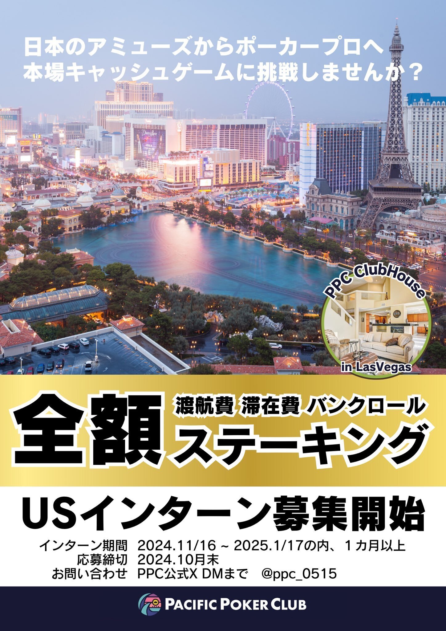 ※むさぽUSインターンとは、渋谷にあるMUSASHI POKER ROOMとアメリカネバダ州にあるPacific Poker Clubが提携して行っているcash gameのステーキングプログラムです。知らない方は詳細を『PPC』から確認ください。