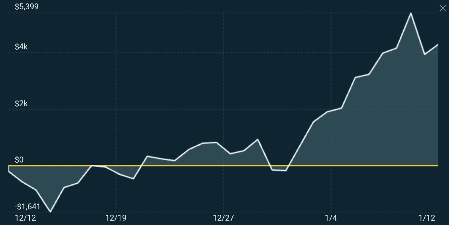 5日間で抱えた負債を数日で返済し、年内には$923(+307BB)勝ちまで盛り返すことができた。