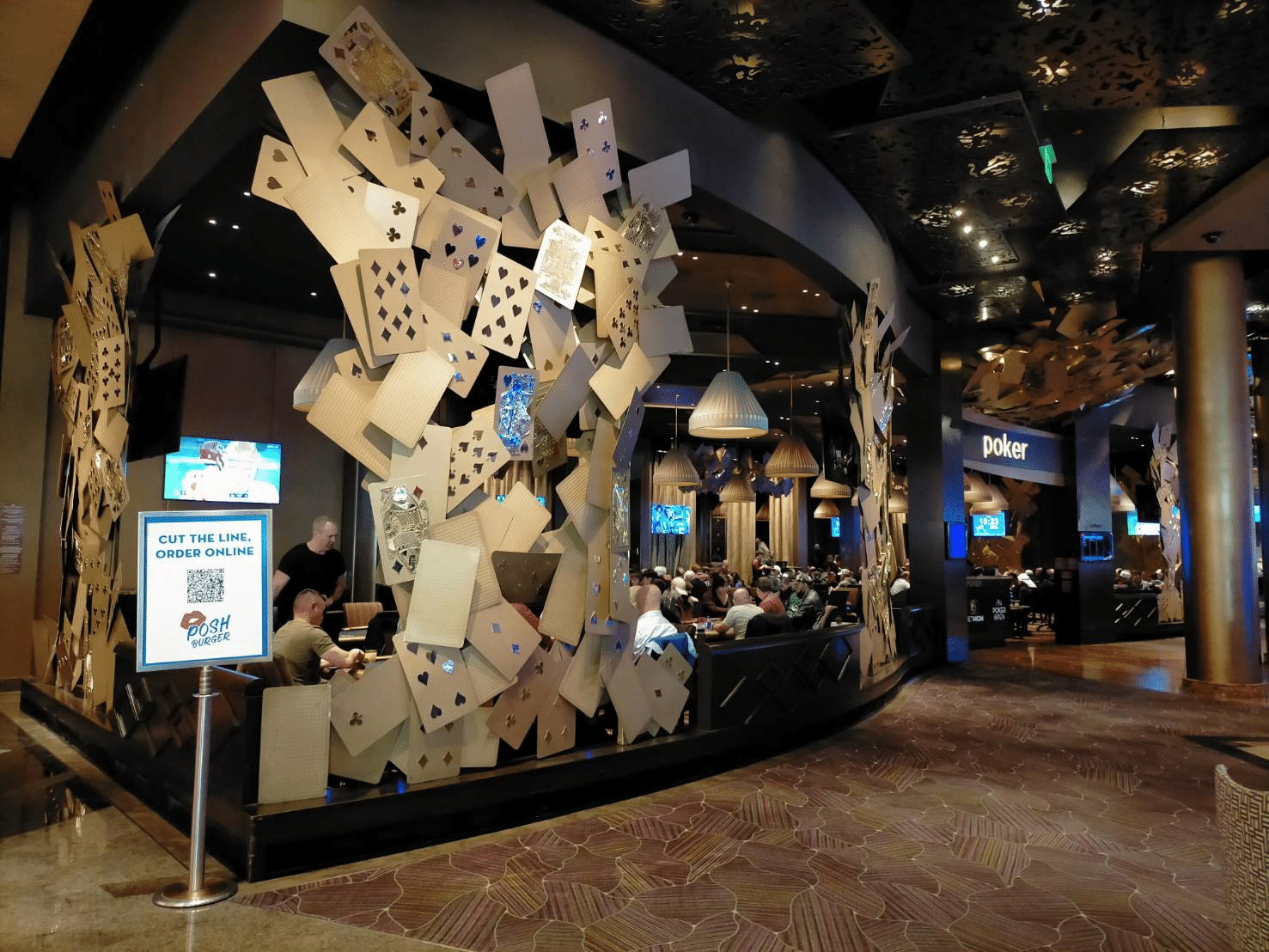 Ariaは8-maxなこともあって席が広いこと、施設自体が綺麗なこと、隣に美味しいハンバーガー屋があること、イエローカレーが美味しいこと、ペリエ(炭酸水)にライムが乗っていること、アパレルが可愛いこと等、この旅で自分が一番好きになったポーカールームである。