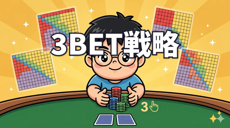 シリーズ第2回のテーマは 3BET です。AAやAKといった最強ハンドでしか3BETを返せていない方も多いと思いますが、本来3BETは スタック深度とポジションに応じて4つの構築パターン を使い分ける必要があります。