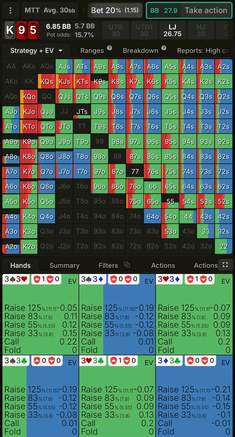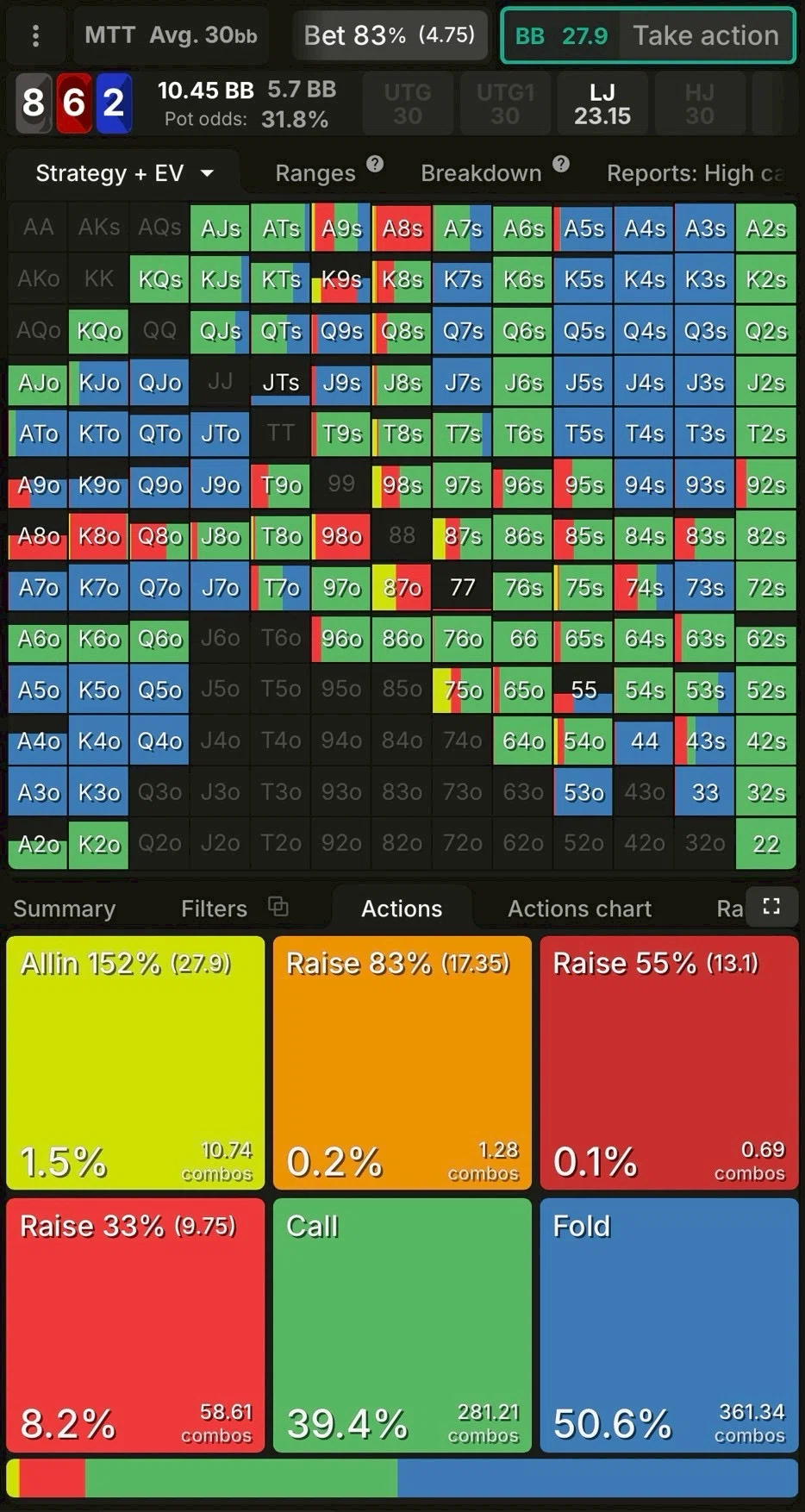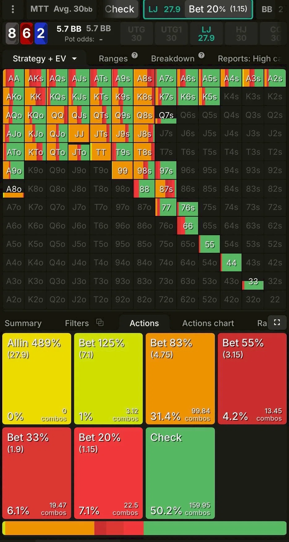LJ vs BB SRPのCB戦略|30bbボード別ヒットチャート【Ajo MTT解説 vol.3】