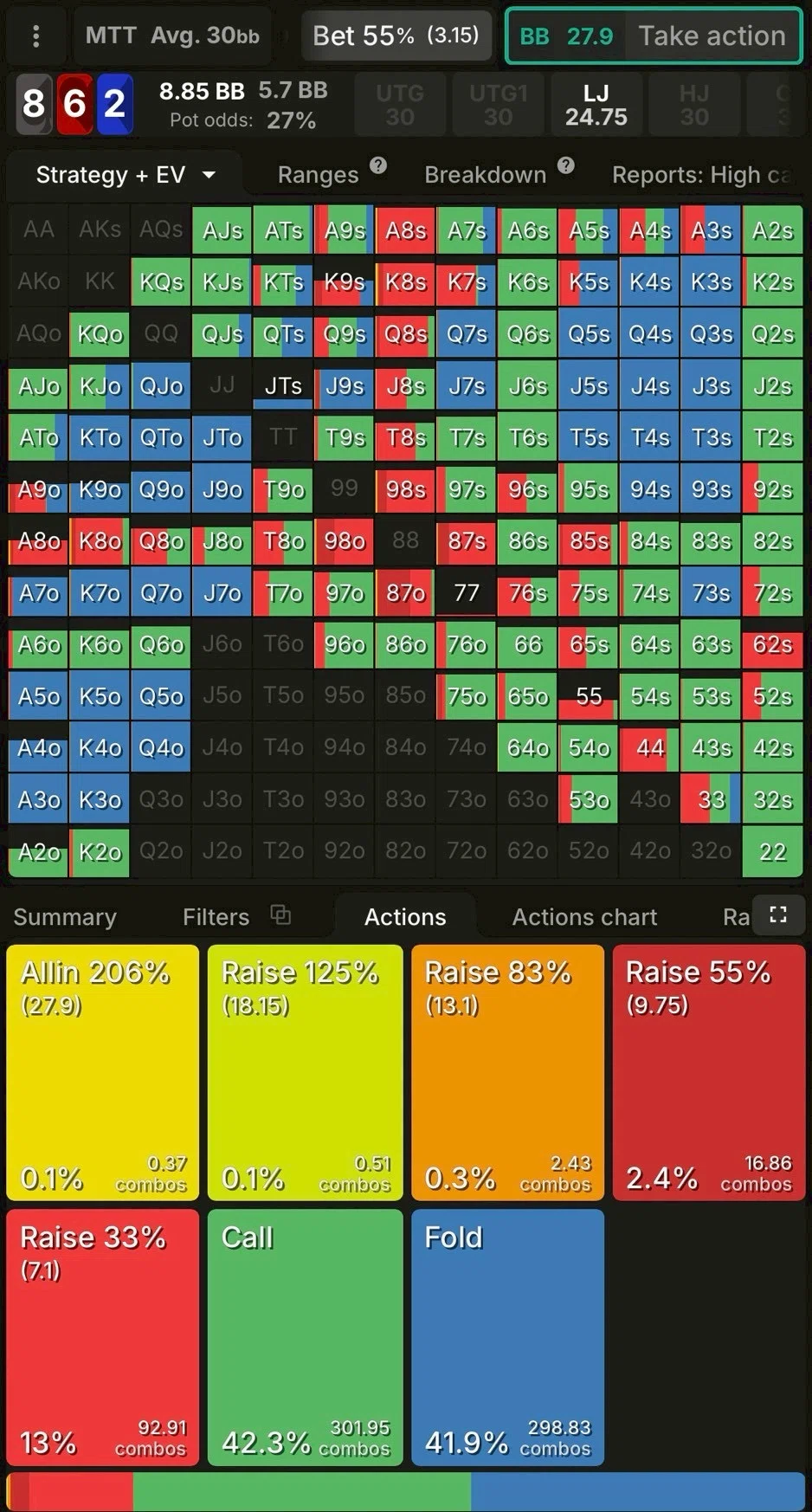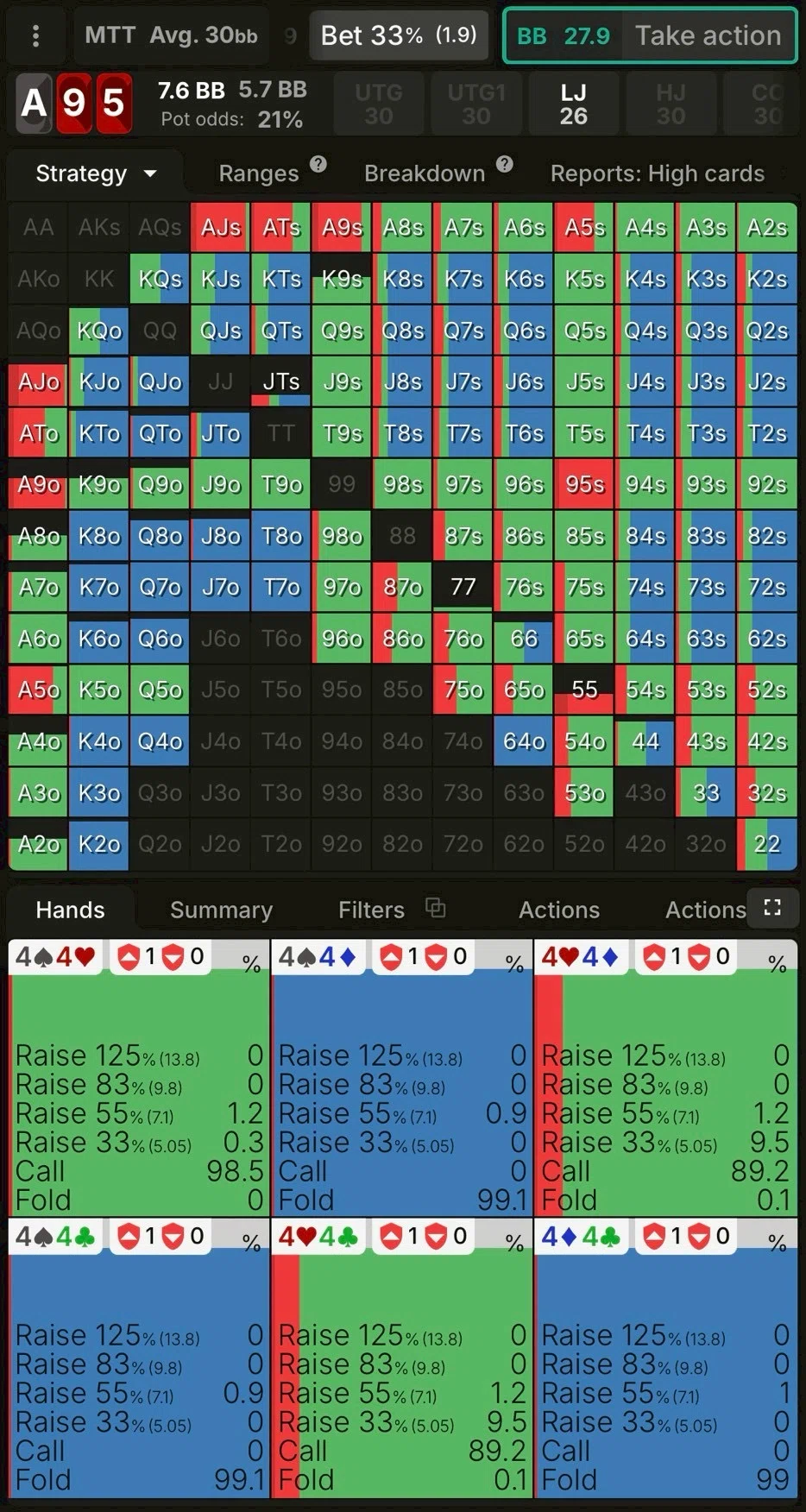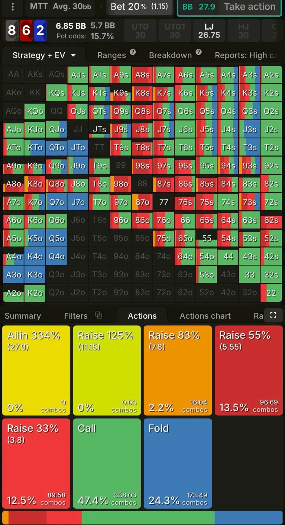 LJ vs BB SRPのCB戦略|30bbボード別ヒットチャート【Ajo MTT解説 vol.3】