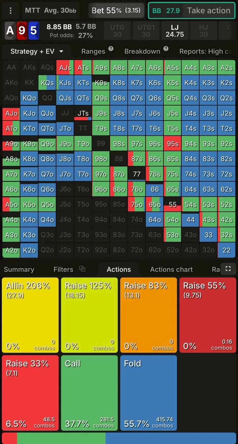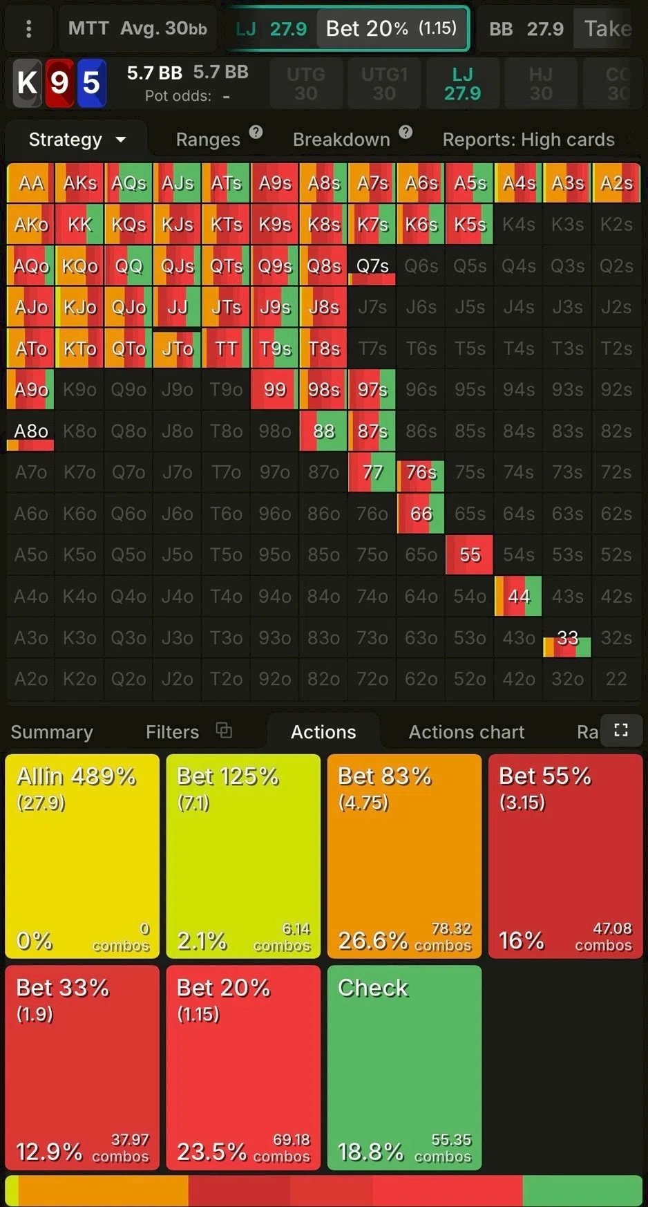 - レンジ表は左がLJ(IP)、右がBB(OOP)の想定