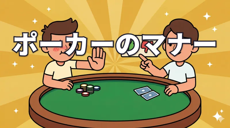 ポーカーのマナーを初心者向けに解説。ストリングベット・スローロールなどのルール違反・マナー違反を「なぜダメなのか」の理由付きで紹介。知っておけば初めてのライブポーカーも安心です。