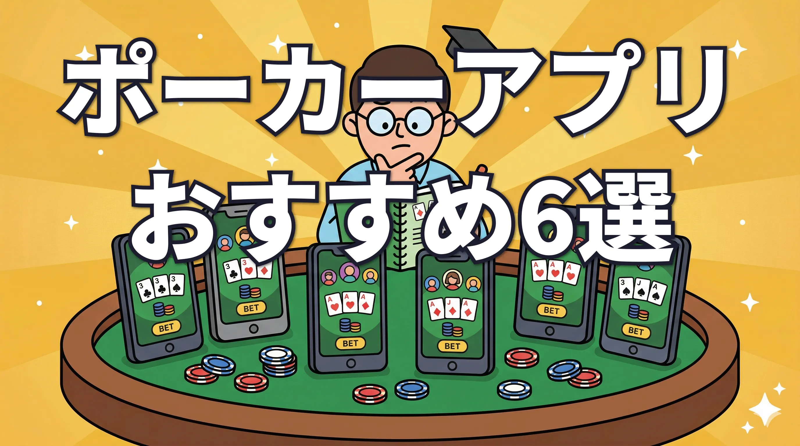 ポーカーの勉強アプリは数多くありますが、本当に上達に役立つものは限られています。この記事では、実際に使っておすすめできるアプリを3つに厳選し、「何から始めて、どう進めるか」の学習ルートを紹介します。
