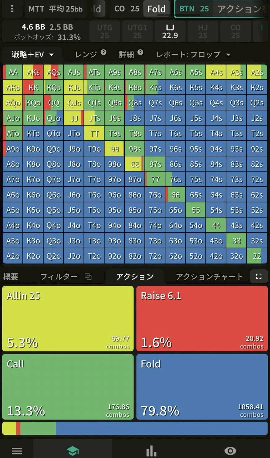 This article uses ChipEV (raw chip EV) solutions. When ICM is in play (on the money bubble, at the final table, etc.), short-stack 3-bet all-in frequencies and BB bluff 3-bet frequencies shift noticeably. Apply the ICM considerations we covered in Vol. 1 (blind battle at 25bb) when adapting these ranges for ICM spots.
