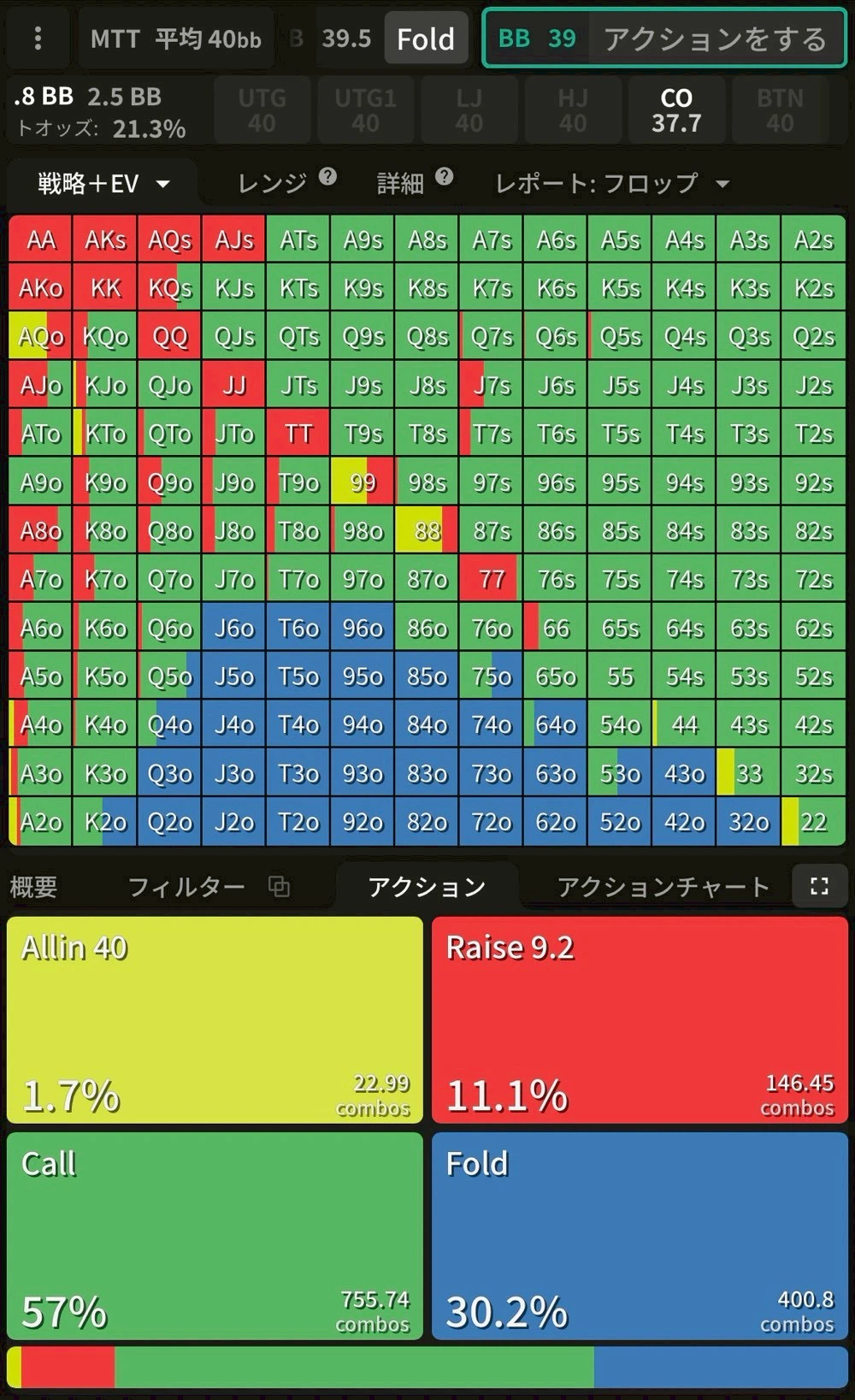 - At 40bb, there's also a real frequency of 3-bet all-in — because the post-3-bet SPR is already shallow