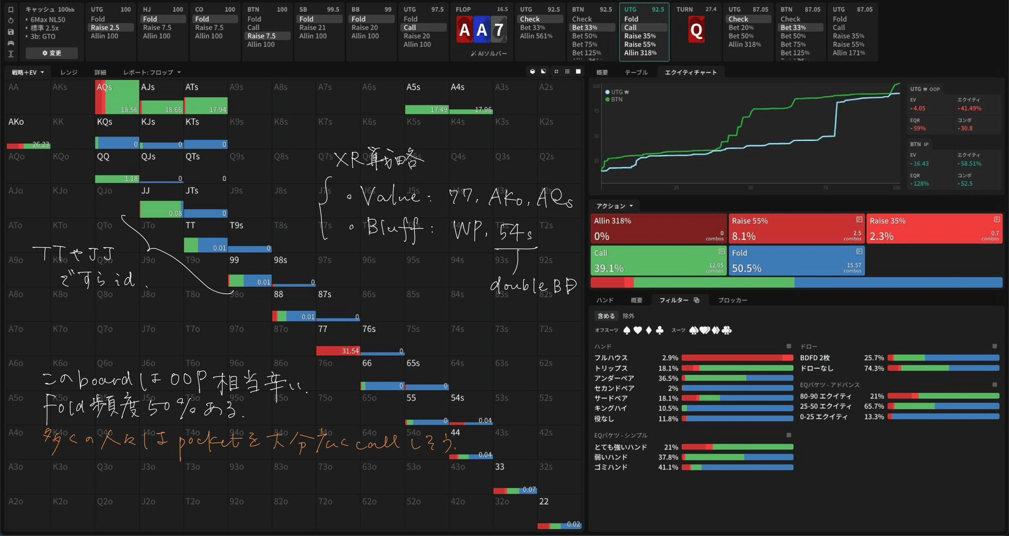 🃏 Flop A♥A♦7♠ — CB戦略