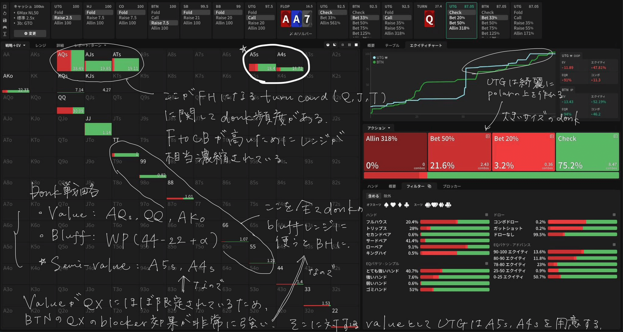 - Turn A♥A♦7♠Q♥ — donk戦略・donkへの応答・DB戦略・DBに対する応答