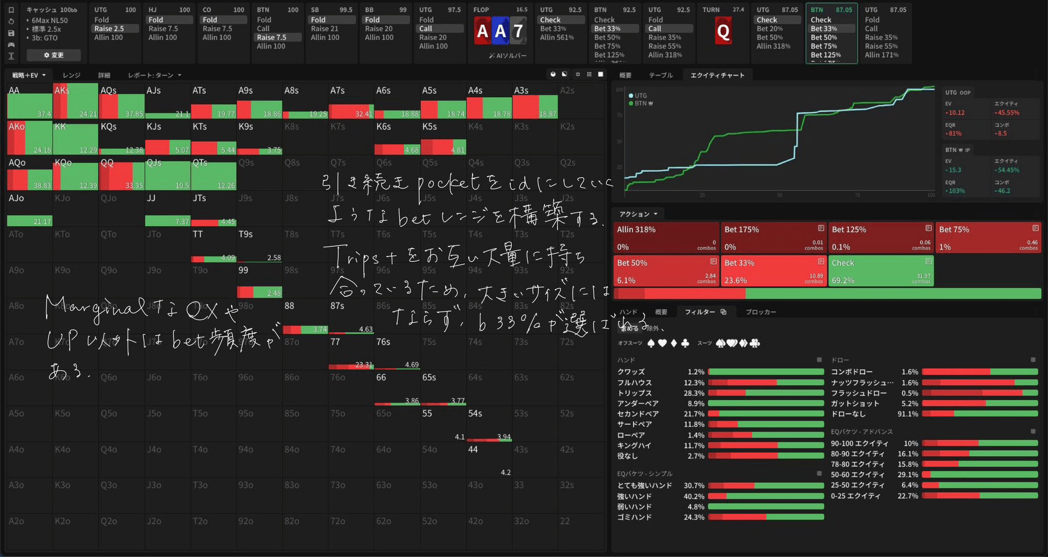 引き続きpocketをidにしていくようなbetレンジを構築する。