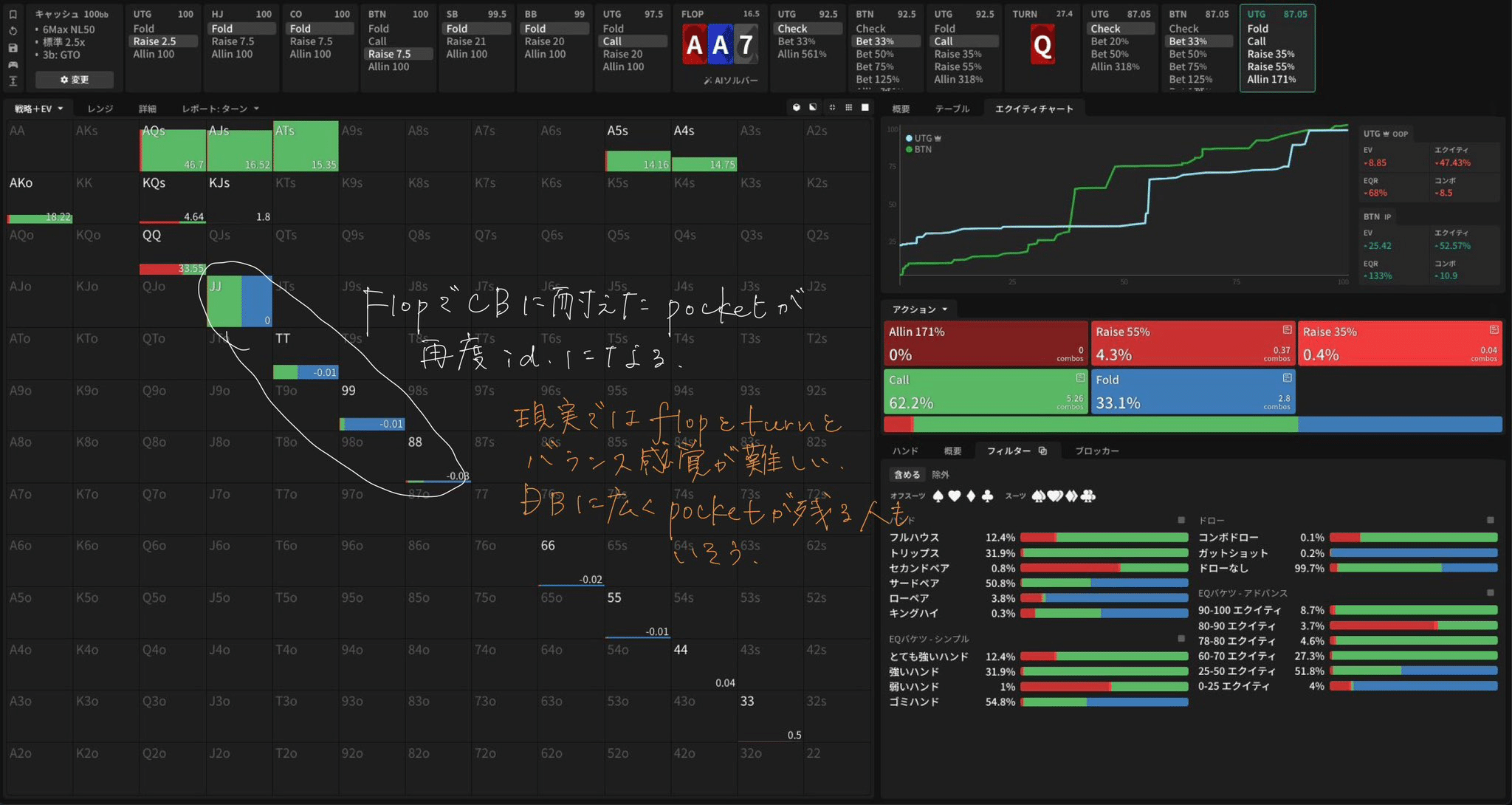 現実ではflopとturnとバランス感覚が難しい。