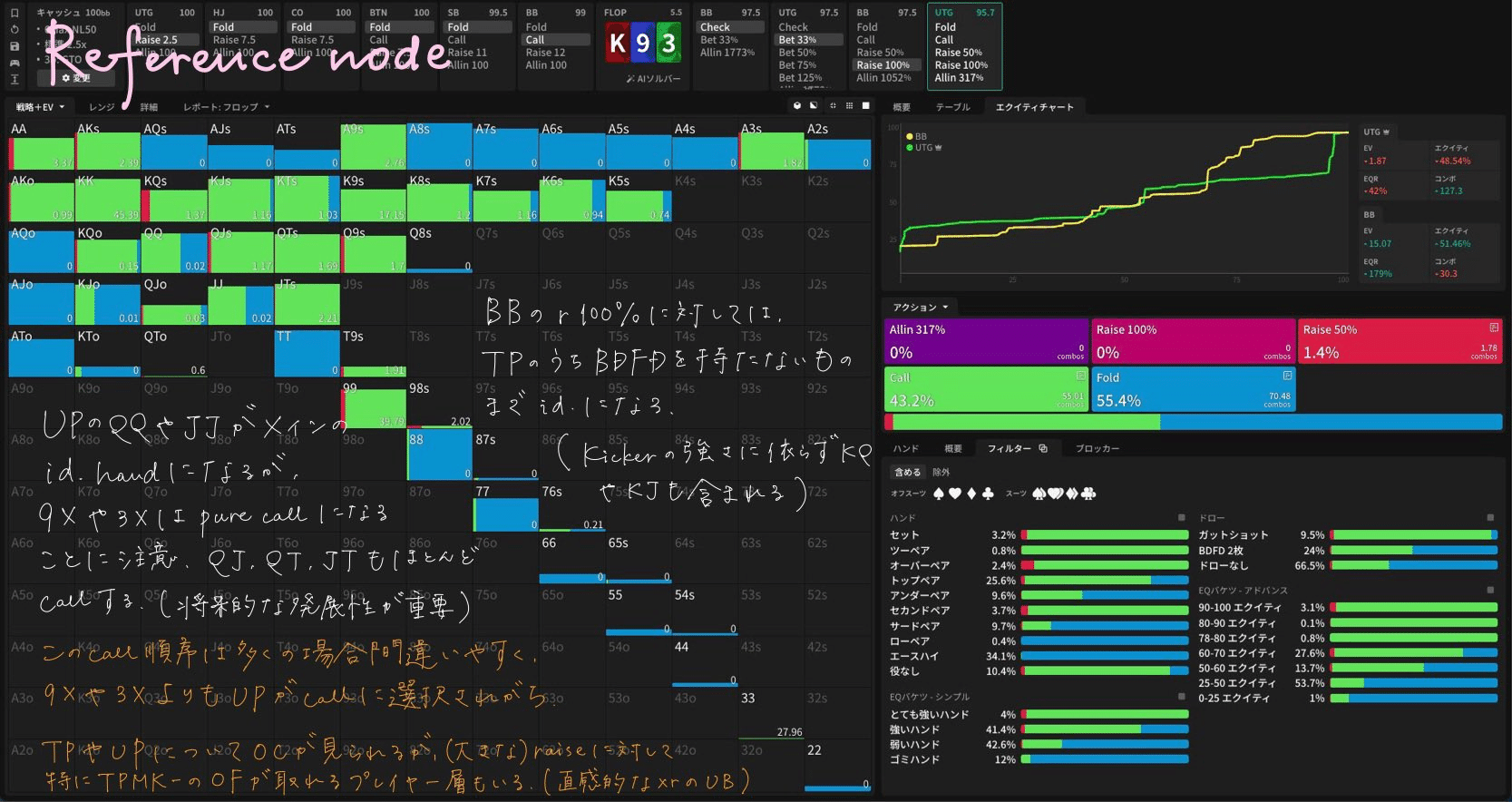本記事では、GTOWizardのソリューションをもとに UTG vs. BB SRP の K♥9♦3♣8♥2♣ ボードにおける K-high boardにおけるFlop xr, River probe戦略(node: xbc-xx-b?) を解説します。各ストリートの戦略をGTOの観点から分析し、言語化しています。