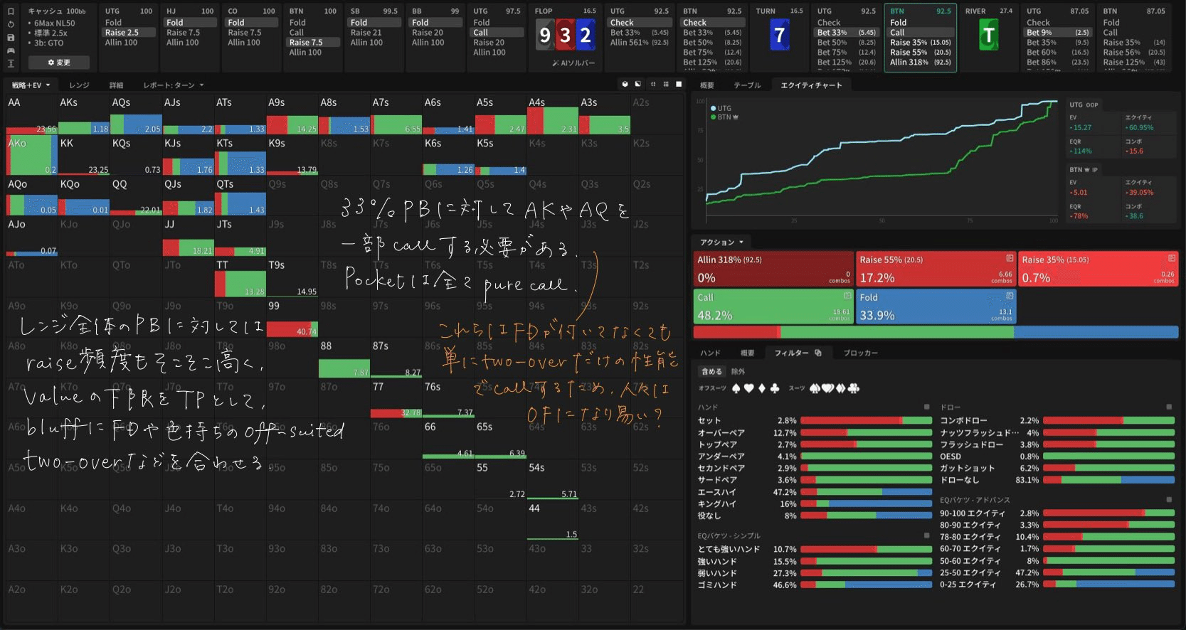 - Turn — Turn 9♠3❤2♦7♦ PB戦略・Turn 9♠3❤2♦7♦ PBに対する応答・Turn 9♠3❤2♦7♦ raise to PBに対する応答