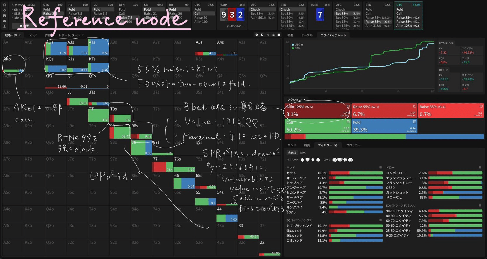 GTOWizardのソリューションをもとに UTG vs. BTN 3bet pot の Flop xxにおけるRiver OOPからのthin value bet戦略(node: xx-bc-?) を解説します。各ストリートの戦略をGTOの観点から分析し、言語化しています。