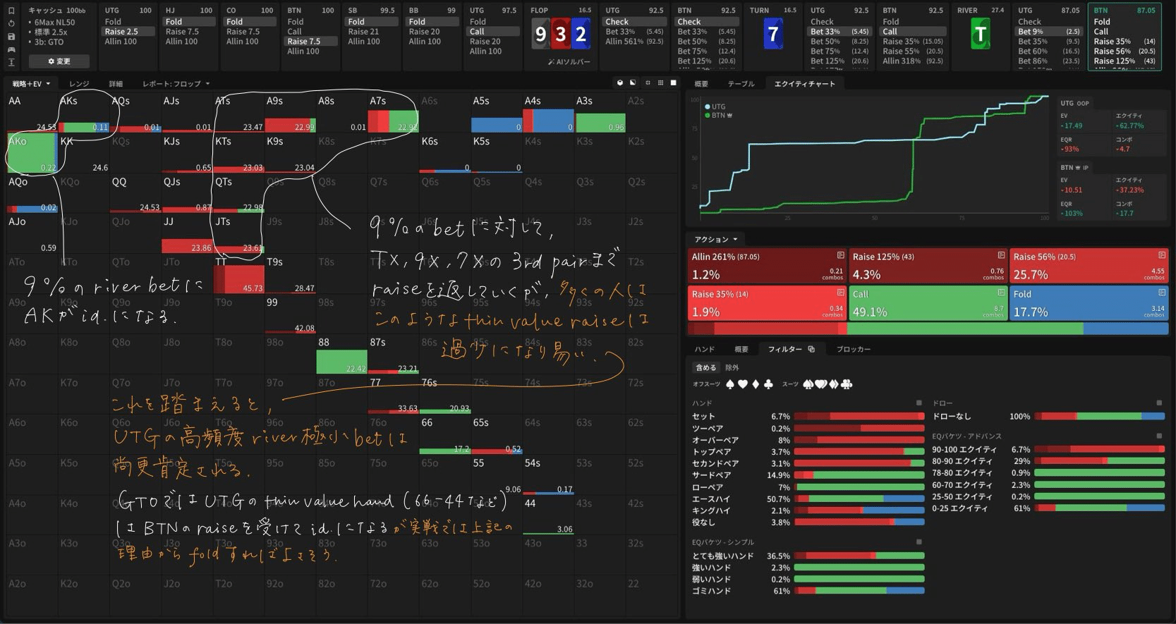 - River — River 9♠3❤2♦7♦T♣ PB後の継続bet戦略・River 9♠3❤2♦7♦T♣ 9%betに対する応答