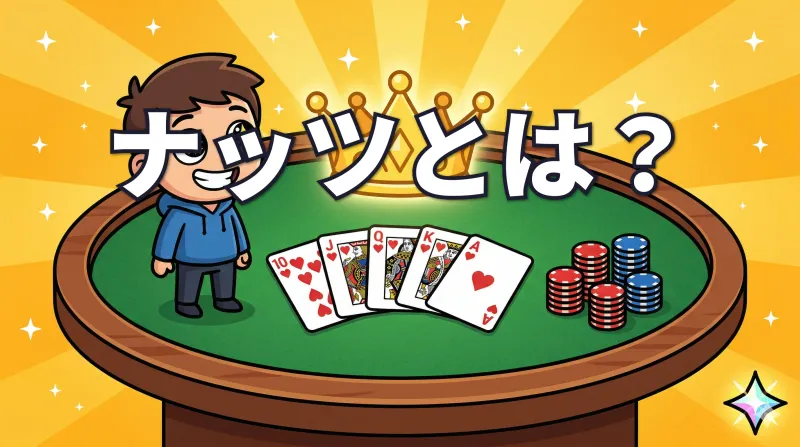 ポーカー用語「ナッツ」の意味と判別方法をわかりやすく解説。ドライ・モノトーン・コネクト・ペアボード別の考え方やストリートごとのナッツ変化を、クイズ形式で実践的に学べます。