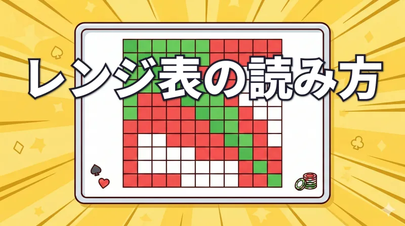 ポーカーのハンドレンジ表の読み方を初心者向けに解説。13×13マスの構造・色の意味・コンボ数の考え方を具体例で覚えましょう。